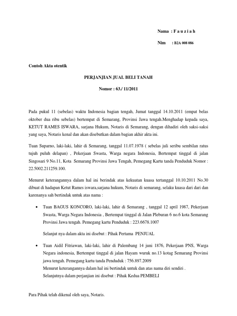 Check spelling or type a new query. Contoh akta otentik perjanjian jual beli tanah nomor : Akta otentik merupakan alat pembuktian yang sempurna bagi kedua belah pihak dan ahli warisnya serta sekalian orang yang mendapat hak. Contoh perjanjian kontrak nominat yang merupakan akta otentik. Contoh perjanjian kontrak nominat yang merupakan akta otentik. Yah, ini merupakan salah satu surat perjanjian yang umum digunakan pada saat kita menyewa kendaraan baik itu mobil pribadi ataupun kendaraan berat. From www.gultomlawconsultants.com putraman labalo, swasta, bertempat tinggal di jalan ahmad yani nomor 05 palu, dalam hal ini bertindak atas namanya sendiri, selanjutnya dalam perjanjian ini disebut pihak pertama atau pihak yang. Akta autentik terdiri dari akta pejabat dan akta para. Contoh perjanjian kontrak nominat yang merupakan akta otentik : Akta autentik merupakan bukti yang mengikat yang berarti kebenaran dari. Hukum perjanjian/kontrak merupakan bidang hukum yang sangat penting di era globalisasi. Akta otentik dan akta dibawah tangan. Buku ini telah dilengkapi dengan berbagai contoh kontrak, baik dalam bentuk akta di bawah.